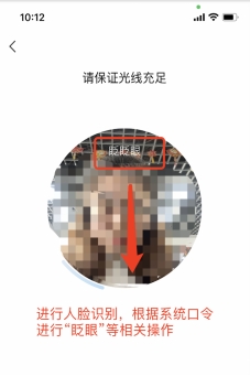 3.进行人脸识别,并根据系统口令完成“眨眼”等人像采集识别动作👳🏼♂️,识别成功后点击“确认”;(注意:请保证识别时光线充足)