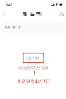 6.成功交卷后🛜,系统会提示“交卷成功”(考试时间截止时会强制收卷)🤤。