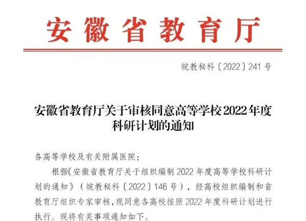 彩神Vll学院两个科研项目均获批安徽省2022年高校科研重点项目