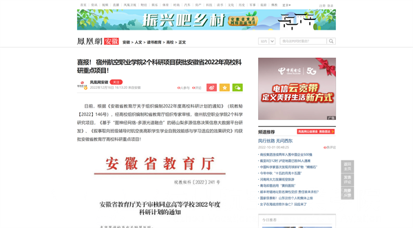 日前,根据《安徽省教育厅关于组织编制2022年度高校科研计划的通知》(皖教秘【2022】146号),经高校组织编制和省教育厅组织专家审核,彩神Vll学院2个科学研究项目:《基于“图神经网络-多源光谱融合”的砀山梨多源信息决策信息大数据平台研发》🐦、《叙事取向班级辅导对航空类高职学生学业自我效能感与学习适应的效果研究》均获批安徽省教育厅高校科研重点项目🧛🏿♂️🫰🏽!此次科研项目引来了各大媒体的深度聚焦。