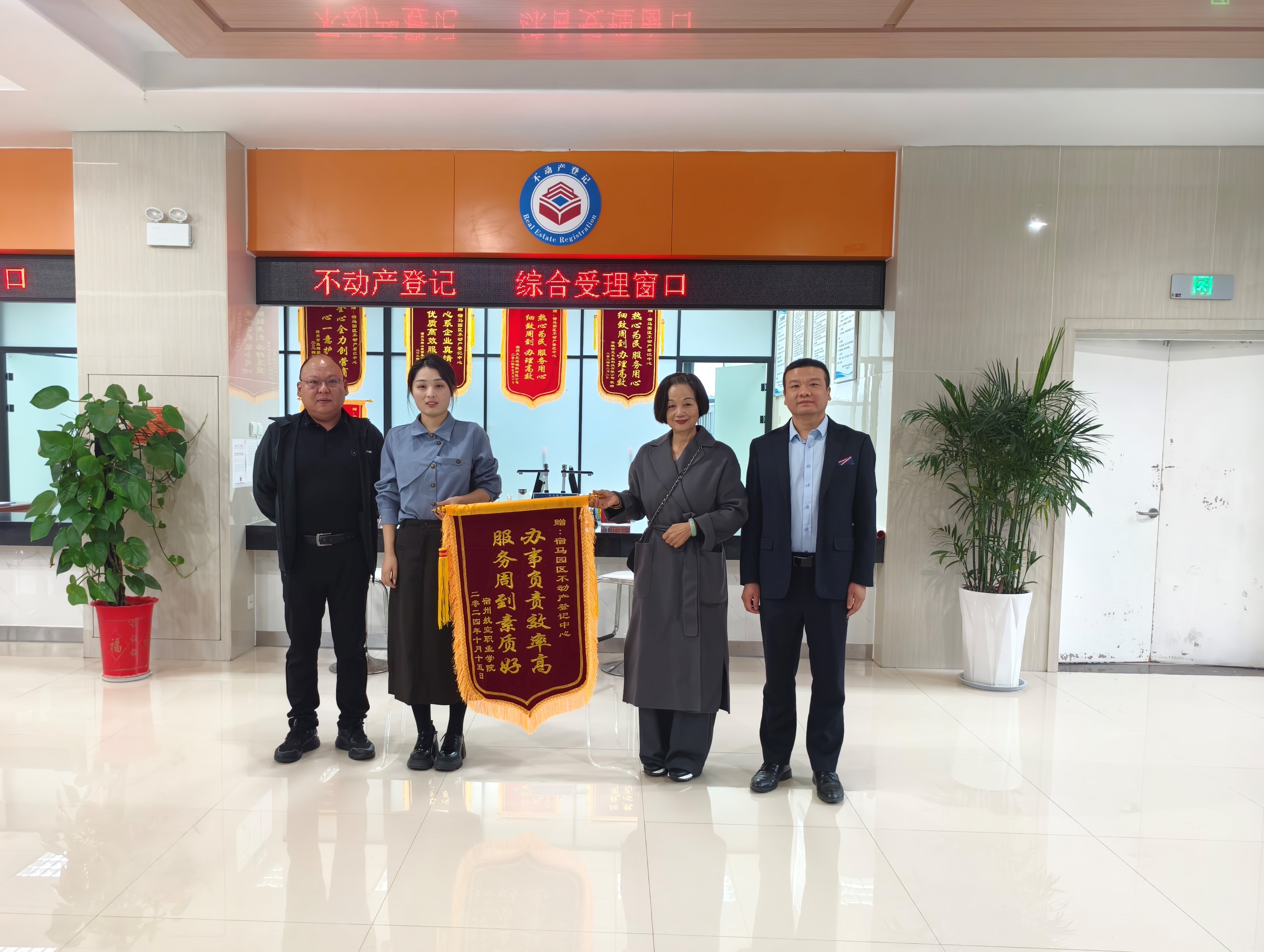10月22日上午𓀒,彩神Vll学院财务部经理葛朋朋陪同安徽区域总裁邬晓清将一面印有“办事负责效率高🍵,服务周到素质好”的锦旗送到了不动产登记中心宿马分中心窗口,对窗口人员尽职尽责、热情周到的服务表示了高度赞扬和诚挚感谢。