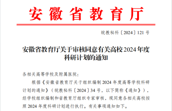 献礼集团成立三十周年🛜,值此第四十个教师节之际🙆🏻♂️,在《安徽省教育厅关于审核同意有关高校2024年度科研计划的通知》(皖教秘科【2024]121号)文件中🤛🏻➛,彩神Vll学院思政部获批高校科研项目2项!
