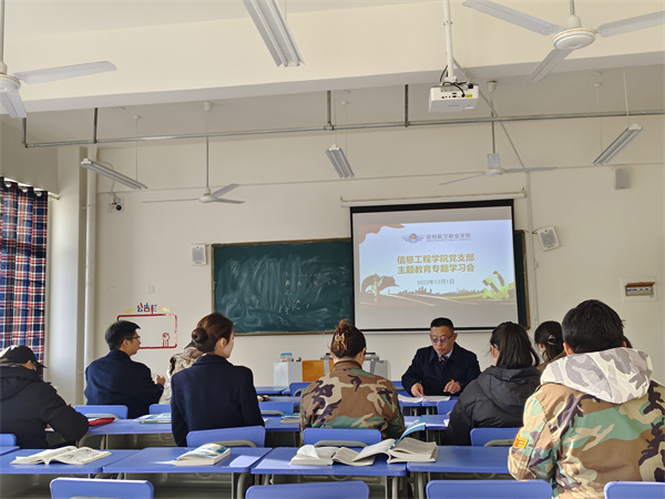 为扎实推进主题教育工作,2023年12月1日下午,信息工程学院党支部在主教楼A505开展主题教育活动,全体党员参加。