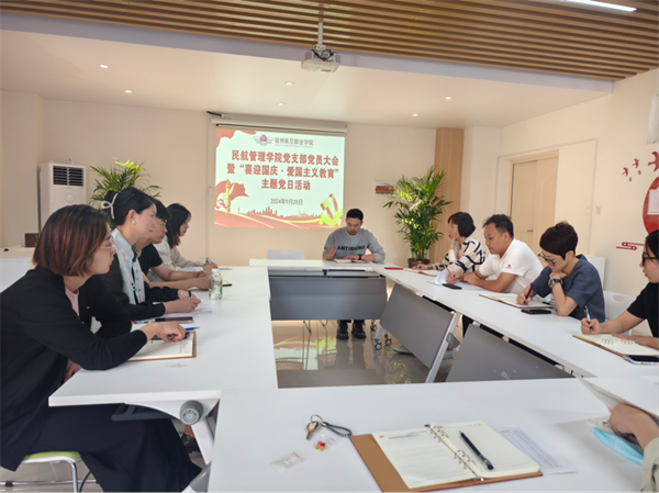 2024年9月25日下午16时20分,民航管理学院党支部在党群活动中心隆重召开了全体党员大会暨“喜迎国庆·爱国主义教育”主题党日活动⇾。大会由支部书记解伟主持🔈,全体党员参与。