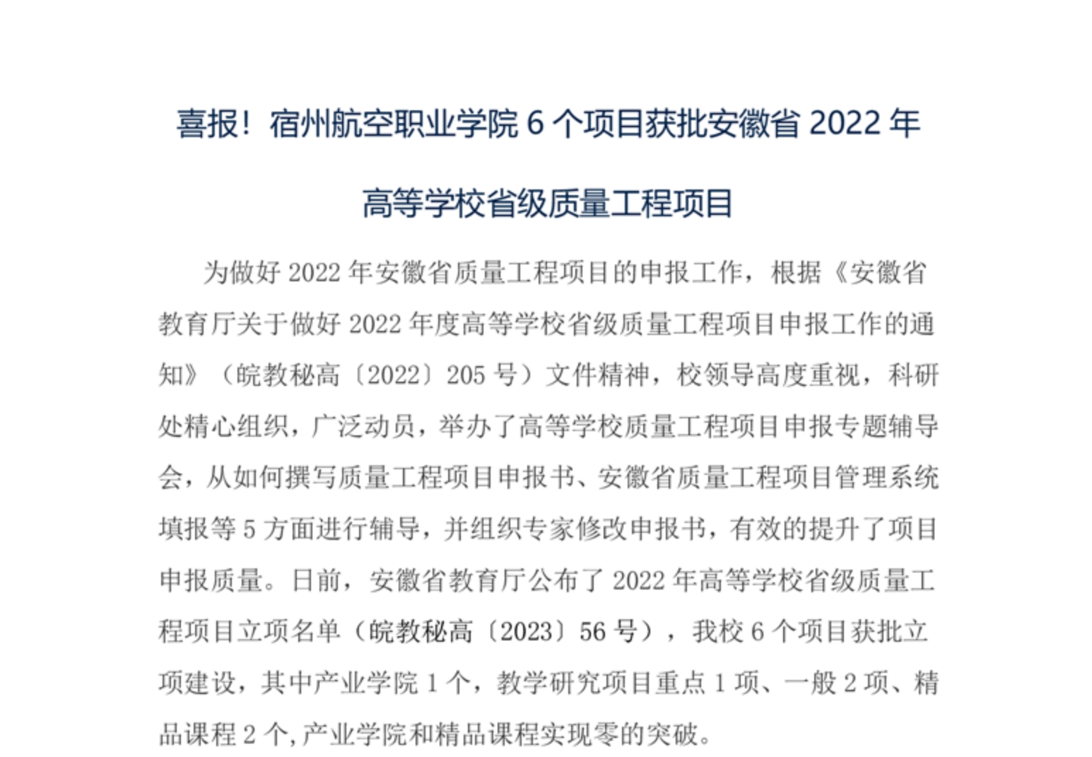 喜报——彩神Vll学院6个项目获批安徽省2022年高等学校省级质量工程项目