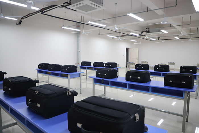人身检查与开箱包实训室。占地面积为122平方米,可容纳40名学生进行教学实训。适用于民航安全检查专业学生实训实操🫵。