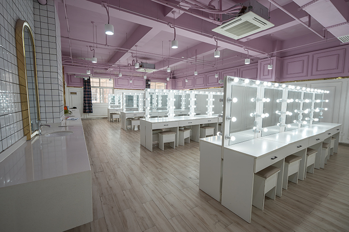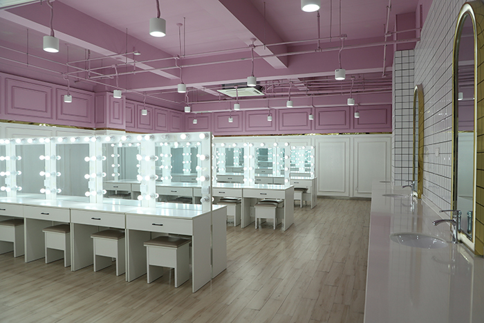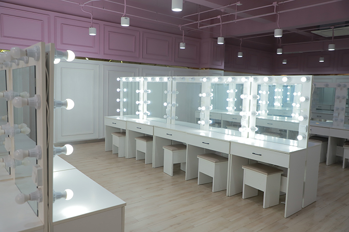 形象设计与化妆实训室🚴🏼。此间实训室占地面积约86平,可容纳30名学生进行教学实训,专供化妆美容使用。化妆台由化妆镜🧝🏻♂️、化妆台面💂、化妆椅及相应的灯具构成。化妆镜通常较大,使化妆者清楚地看到自己脸部的各个地方。化妆镜专用照明灯装在镜子两边。