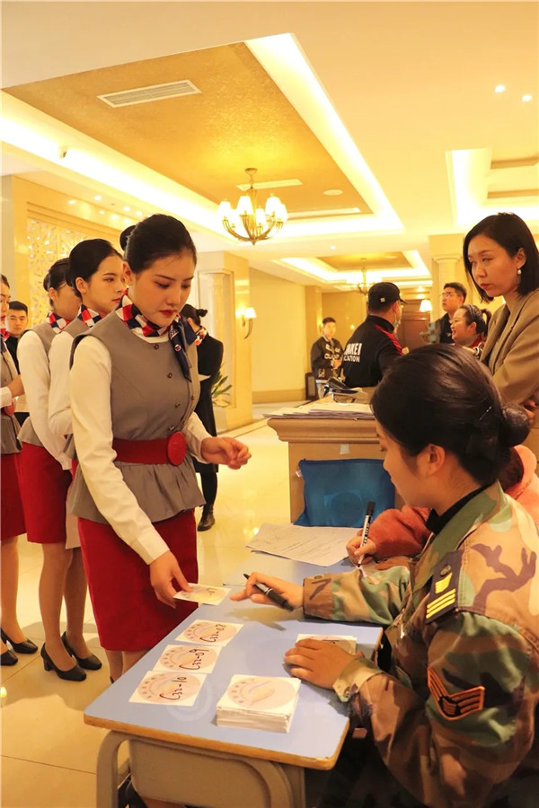 招聘会首先进行了初试环节,面试官对面试者的身高体重🐂👐🏻、外形体态等进行严格的基本条件审查🤚。只有符合条件的学生才能进入下一轮复试🌩。复试环节分为两轮进行,并更加注重专业能力及语言能力。在第一轮,面试学生报上自己的特长📱、籍贯以及工作实习经历等♣︎,并挽袖子看手臂有无疤痕和手腕活动情况。随后,所有通过第一轮复试同学一起进入考场,面试官们进一步对学生的仪容仪表、就业意向进行了仔细的询问。