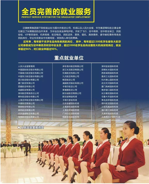 每年🔱,西航都会接待数百家民航用人单位🙎🏿♂️,组织近200场校园招聘,为西航学子提供大量的就业面试机会🈂️🧏🏿♀️。目前,学院已经与国内外数百家民航单位以及人民大会堂、华为集团等知名企事业单位建立了长期稳定的合作关系,开辟了空中乘务🆕、空中安全保卫👱🏻✌🏻、国际空乘👩🏿🏫、人民大会堂安检☠️、高级会议接待🪿、民航安检、VIP贵宾接待🎥,飞机电子设备维修🎡🖇、民航话务、票务🍩、航空物流等多种民航岗位🧑⚕️🦪,让每一位学子都能顺利走上工作岗位🕺🏿,成就自己精彩人生🥥。