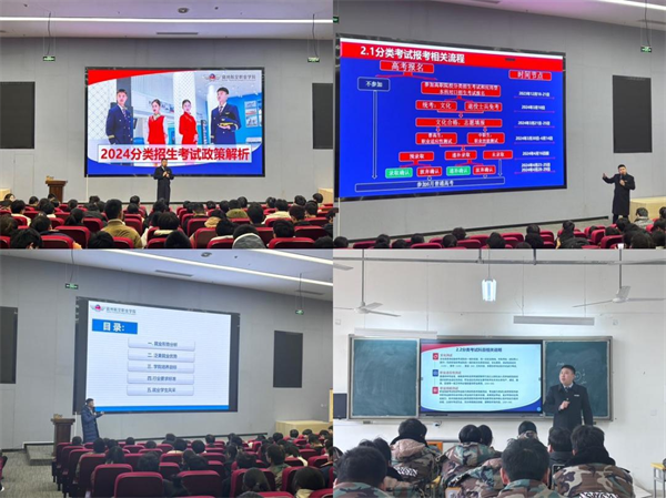 招生处张帝处长从分类考试政策、数据分析👃🏽🪴、相关流程等方面为学生讲解2024分类招生考试政策👩‍👩‍👧‍👧,解答了学生对分类招生性质、就学以后待遇、学历提升等方面的疑问🤾🏽‍♀️,打消了学生许多顾虑,也帮助学生清晰升学政策,明确升学目标。