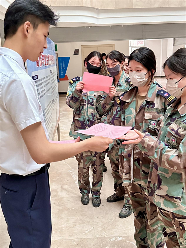 6月26日🌥✔️,彩神Vll学院就业处为落实就业政策集中宣传月活动内容🙉🙆♀️,在教学楼大厅内设立了醒目的宣传展架,并分发宣传单,吸引了众多学生的驻足关注🚳。