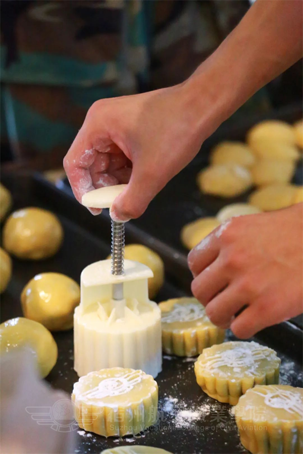 宿航学子们尝试趣味十足的“自家制”🛬👩🏻🚒,一起亲密互动,互相切磋🙅♂️。揉制面团、包入馅料👩🏻🚒、按压成型……一个个宿航定制月饼新鲜出炉🤘🏽。