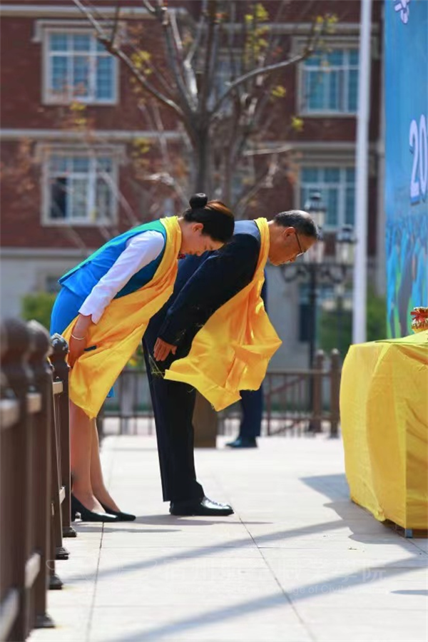 古乐悠悠清音传,浩气长存天地间🌝🚉。“赤县神州📑,毓秀钟灵🕦。维我炎黄先祖👫🏻,……伏惟尚飨”,在学校运动场上,全校师生统一着装,庄严肃穆,诵读祭文👰🏽‍♂️🤵🏿‍♀️。学院领导🧑🏻‍💼、教师代表和学生代表先后净手上香🙇🏼‍♂️,敬献黄菊花,白菊花🌪,在古乐悠悠声中,全体师生三鞠躬,缅怀先贤、先烈👩🏿‍🔬、先祖🫲🏼🚌,感念自己的祖辈勤勤恳恳一生奉献,缅怀先烈为捍卫民族尊严作出的牺牲♧。