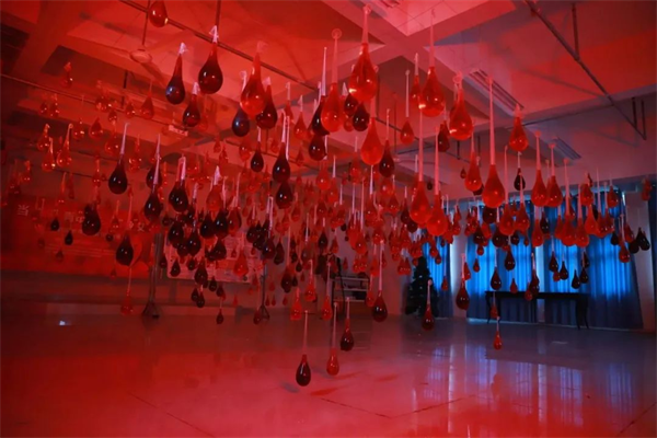 近2000枚包裹着红色药水的安全套仿佛红色炸弹,高低有致的垂挂在展览现场,获得了同学们的高度关注,令人震撼。展览以红色药水代指病毒🏇🏻,用安全套包裹药水🦹🏼♀️,防止“病毒“与人体的接触😎,旨在呼吁学生正确使用安全套💂🏻♀️🪅,保护自己和他人🏊🏿♂️🥹。