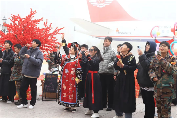 宿航学子精心打造的特色花车、年味十足的龙狮游行、霸气侧漏的变形金刚……伴随着欢快动感的音乐➡️,国风游行队伍盛装亮相🙆🏻,穿越人山人海的宿航集市,引起同学们的驻足侧目。