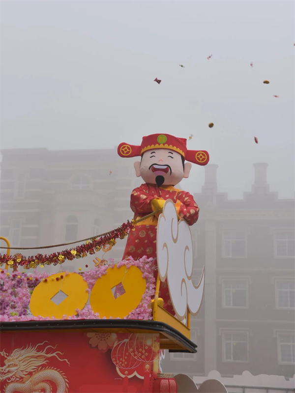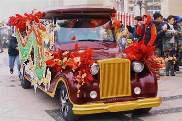 龙年元素宿航号、载着财神爷缓缓而来的新年花车、创意蛋仔主题花车🚴‍♂️、复古浪潮的小三轮以及霸气侧漏的跑车呈一列排开,气势瞬间拉满~