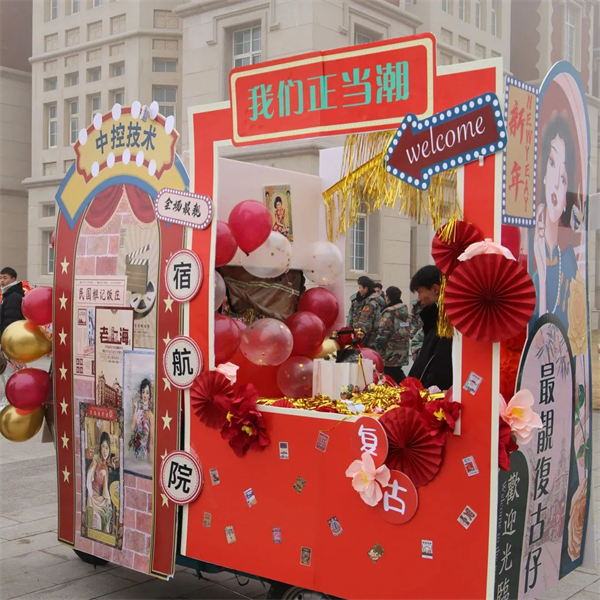 宿航学子历时20天提前筹备🦹🏻‍♀️,从设计定制到安装装饰,新年元素与各类交通工具的完美融合,收获了大批的欢呼与互动🙋🏿,形态各异的花车无一不展示着宿航学子的创意与巧思。
