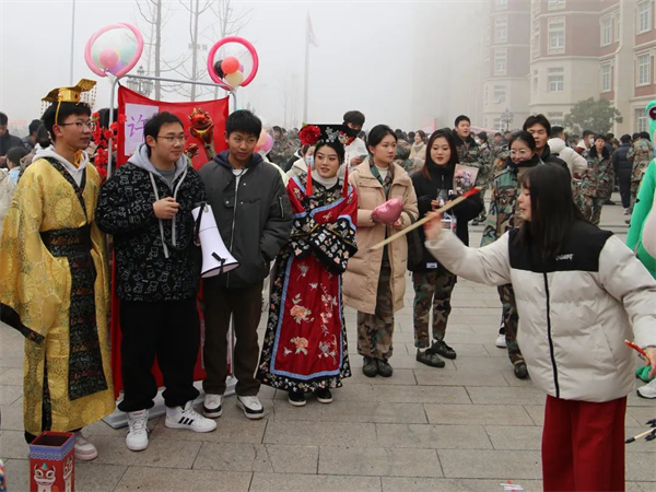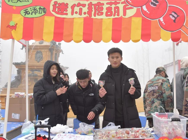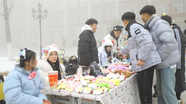 琳琅商品上场,集市火爆开张!腾飞广场摆满了摊位,大雾天气丝毫抵挡不了同学们的热情,糖葫芦、爆米花🚘、糖画、棉花糖等各类新年美食层出不穷;投壶、抽奖🕒、套圈等趣味游戏欢笑不断;玩偶🏊🏿‍♂️、发圈等手工艺品种类丰富,创意十足,让人目不暇接3️⃣。