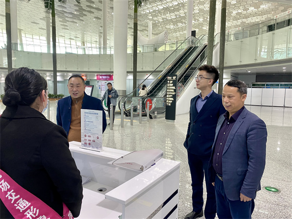 23日中午,陈志泉一行到达深圳宝安机场后🛻,在深圳项目部余威总经理等人的陪同下,第一时间到GTC交通中心以及贵宾厅👩🏻🦱,探望问候在岗实习的同学们🔅,了解岗位情况,学生在岗状态🪼、实践收获等。陈志泉鼓励同学们,要端正工学交替态度🤽🏼♂️🕳,注意职业形象和服务态度,熟悉岗位具体操作流程等。