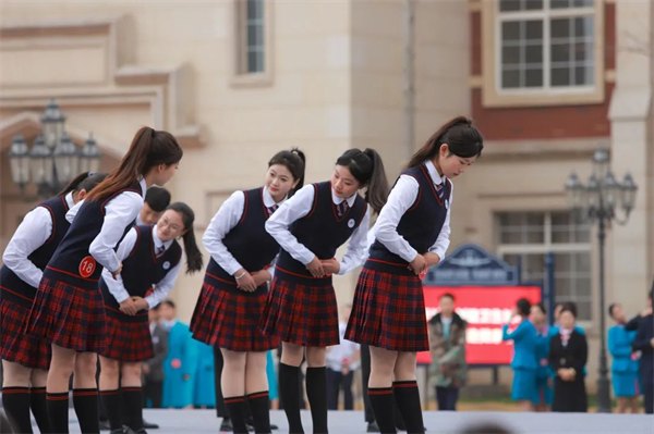 伴随着欢快动感的音乐🙅♂️,宿航学子身着职业装⛎,迈着自信大方的步伐走到台前。他们面带微笑,举止专业有范,队列整齐划一,动作训练有素。学子们日积月累的练习,在舞台上精彩呈现。