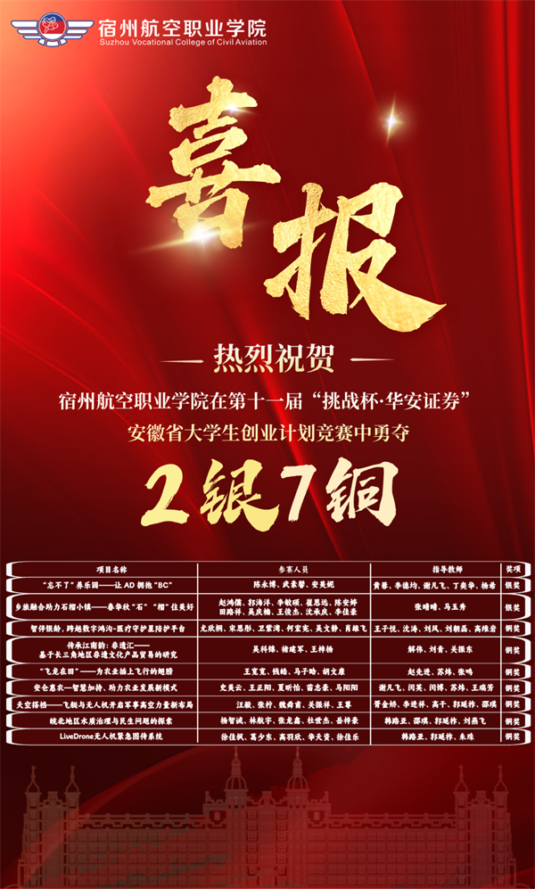 近日,第十一届“挑战杯·华安证券”安徽省大学生创业计划竞赛省级决赛隆重举行。凭借出色的项目创意和扎实的团队实力,我院多个项目成功入围并参加省赛,代表学校与全省的优秀创业团队同台竞技,展现宿航学子的创新风采,勇夺两项银奖和七项铜奖,实现了“挑战杯”系列赛事中的又一次重大突破!