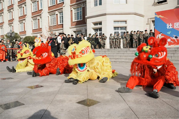 欢呼中,由宿航学子组成的四人舞狮展现着灵活的身姿,一跃一顿💆,惟妙惟肖🎅🏼,喜庆气息扑面而来……