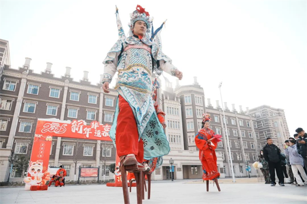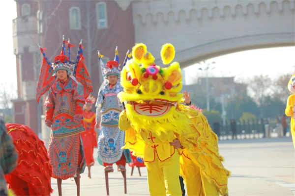 仰头间,只见踩着高跷的师傅们身着戏服,沉浸角色间,表情活灵活现。