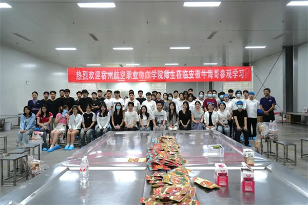 本次大赛由安徽牛海哥零食有限公司🤹♂️、宿州市扶疏亭食品有限公司大力赞助,为提升直播的专业度与深度,在两家企业的全力支持下🏇🏿♤,参赛学子们深入工厂一线♾🤹🏽,零距离体验产品特性与生产流程,为即将到来的直播大赛积蓄能量、做足准备🤌🏿。
