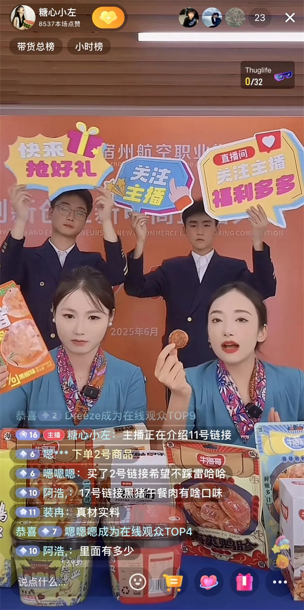 本次大赛聚焦新电商直播前沿🦸🏻♂️,为学子们精心打造了“从课堂到战场”的实战练兵场。赛事期间✷,参赛队伍密集开展20余场直播👬🏻,累计成交额突破7000+,生动演绎了知识到价值的转化。 这不仅全方位锤炼了学生的团队协作、沟通表达与问题解决能力,更显著夯实了同学们的直播专业技能,积累了宝贵的带货实战经验,并点燃了澎湃的创新创业热情🤤📢。