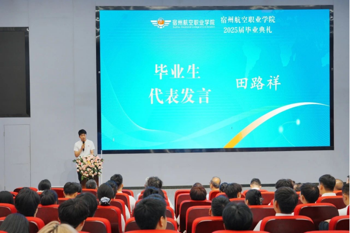 “站在这里,比第一次在学代会上发言还紧张🫃🏼!因为台下坐着的,是我的青春合伙人。”毕业生代表田路祥以幽默开场,将三年宿航时光娓娓道来,字里行间满是对母校的眷恋与师长的感恩。