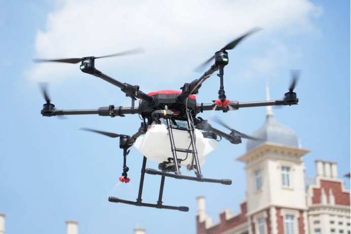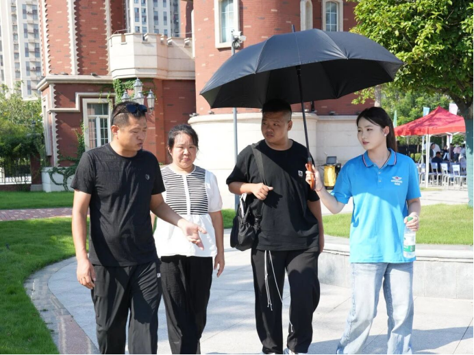 无人机编队在人群上空巡航,喷洒细腻水雾,为现场的新生及家长带来阵阵清凉👑,让炎炎烈日下的报到流程变得清爽舒适🫢🦨。身着统一服装的志愿者们,主动为新生和家长撑伞遮阳并提供引导服务,这些无微不至的关怀,展现了学院以人为本的温情关怀🪀。