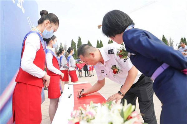 与会嘉宾领导代表携手一起触动揭牌仪式大屏,青岛航空科技职业学院门口红绸同步掀启,青岛航空职业学院正式扬帆起航。同时,泛美通航两架直升机升空喷彩烟庆贺,飞天彩虹喷薄而出,场面壮观➛,赞叹声不绝于耳。