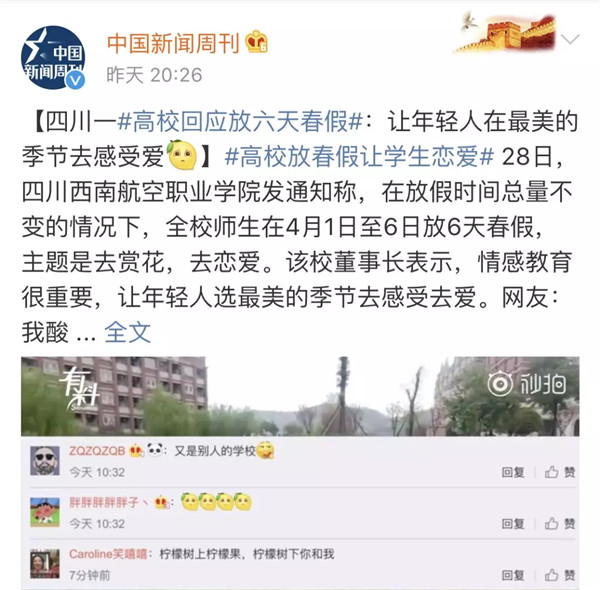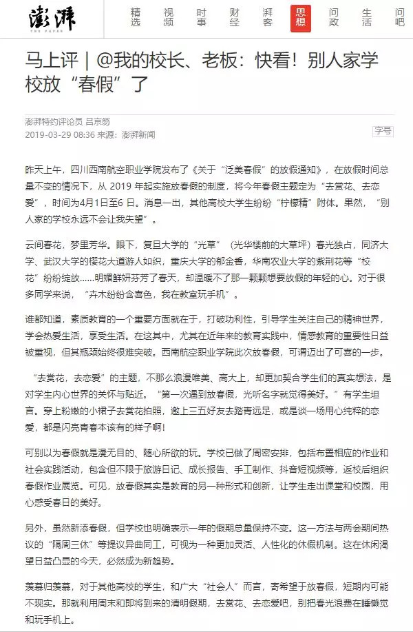 【澎湃评论:马上评|@我的校长、老板😐:快看!别人家学校放“春假”了】