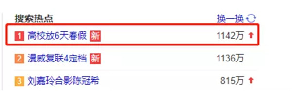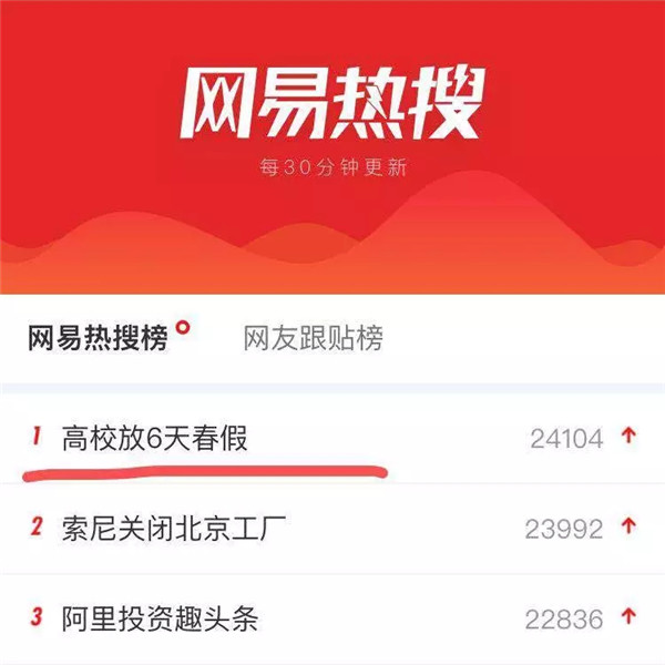 除此之外🎽🛝,在上网输入“高校”两个字,首先出来的就是“高校放6天春假”🤾🏼🆕,可见“泛美春假”这个决定是多么的深得人心。