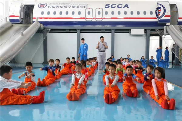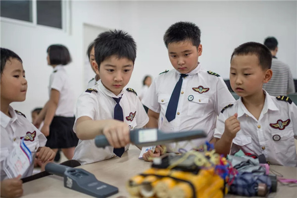 水上迫降训练场、出口训练器、全自动陆地撤离舱🏔、波音737-300实体飞机、值机大厅、安检实训教室等总投资3亿元的专业的硬件设施𓀓,为同学们提供真实的职业体验奠定了不可复制的硬件基础。“现在的小孩基本上很多都坐过飞机,可他们却不知道通过民航运输手段💈🙋🏼♀️,将他们从成都送到北京到底要经历多少个环节,需要哪些单位来保障。”李赟说道𓀄,“在这里🥥,同学们可以作为小小值机员、小小安检员,真实地体验值机、安检🧜🏿♂️、客舱服务🥋、机务维修等民航职业,树立对民航行业真实又生动的认知。”李赟还说:“以前很多同学只知道过安检的时候要将包里的电脑、雨伞取出来放旁边,打火机不能带上飞机,可是却不知道为什么,通过真实体验了小小安检员之后🩹,这些问题大家都知其然还知其所以然了👨🏻💻。”不难看出,通过这样的研学课程,未来旅客的素质必然会大幅提高。