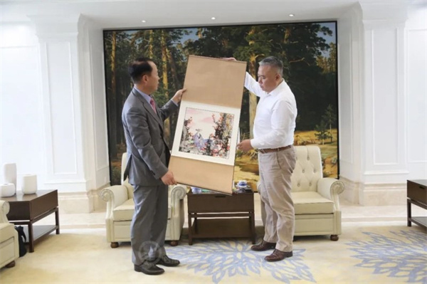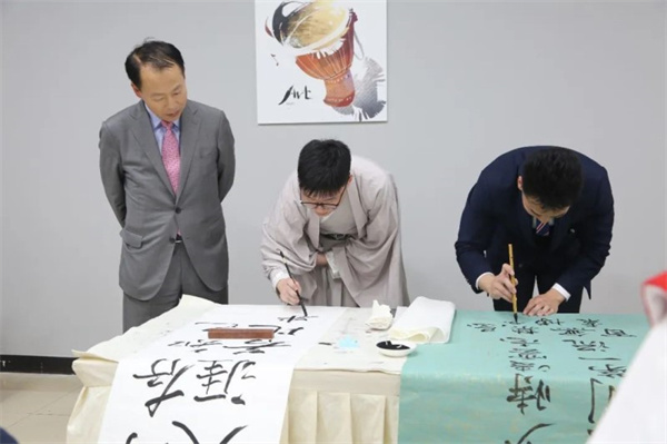 在仪式前📚,大韩民国驻成都总领事馆总领事李光镐一行参观了西航人文经典校园、一流实训中心等⚈,近距离感受实训课堂🙋🏿♀️。大韩民国驻成都总领事馆总领事李光镐与泛美集团董事局主席魏全斌进行了座谈▪️,双方就泛美教育国际化办学理念🏧、校企合作的育人模式等展开交流。