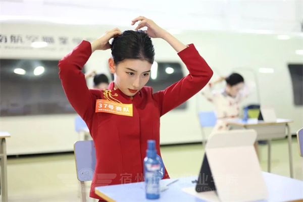除了客舱服务及安全,礼仪形象及语言能力亦是空乘专业不容忽视的能力要求🚣🏽。由此,航空知识问答、系领带、盘发、广播词、英语论述也成为本次大赛的考核要点🚍。