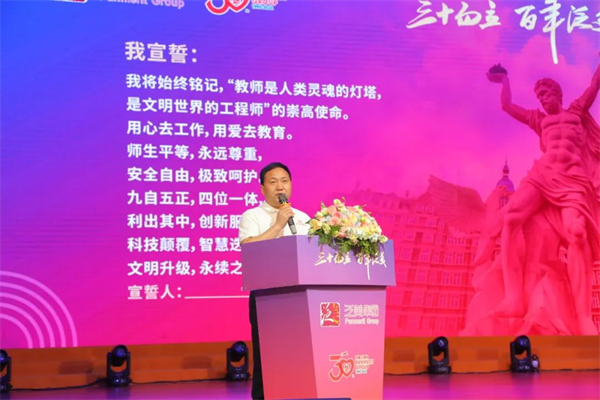 “用心去工作,用爱去教育……文明升级,永续之路💂🏼♀️。”在泛美教育集团常务副总裁、四川西南航空职业学院执行院长李玉龙的领誓下,全体教职员工紧握高举的右拳,一句句铿锵有力的誓言,响彻会场;对教育事业的庄严承诺,催人奋进。