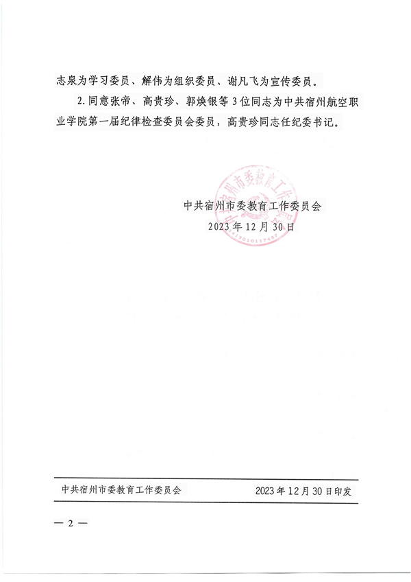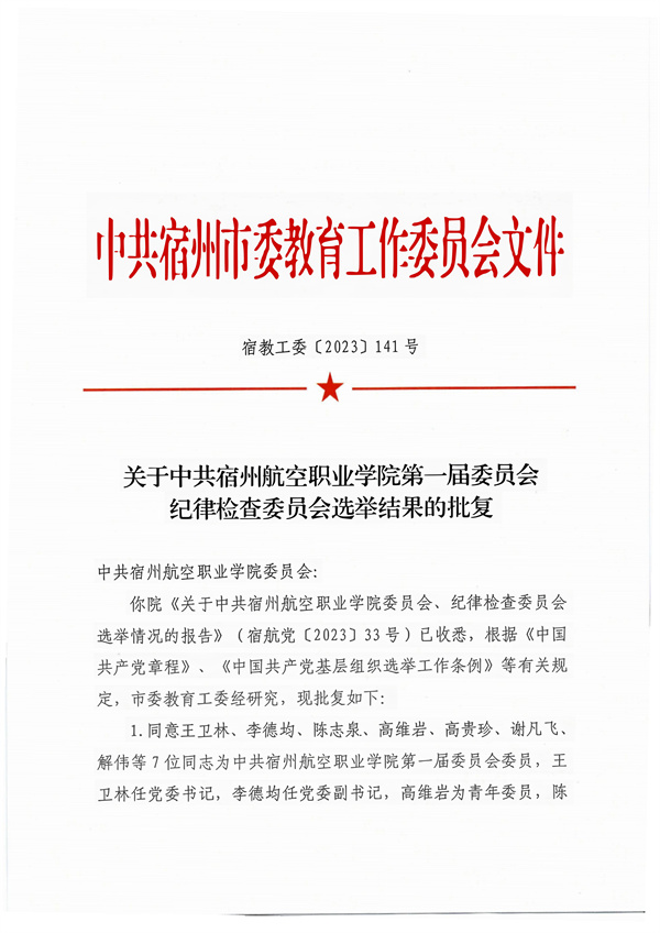 根据宿教工委〔2023〕141号 关于中共彩神Vll学院第一届委员会 纪律检查委员会选举结果的批复文件,同意王卫林、李德均、陈志泉、高维岩、高贵珍、谢凡飞、解伟等7位同志为中共彩神Vll学院第一届委员会委员,王卫林任党委书记,李德均任党委副书记,高维岩为青年委员,陈志泉为学习委员、解伟为组织委员、谢凡飞为宣传委员。同意张帝、高贵珍、郭焕银等3位同志为中共彩神Vll学院第一届纪律检查委员会委员🧵,高贵珍同志任纪委书记👨🏽🏫。