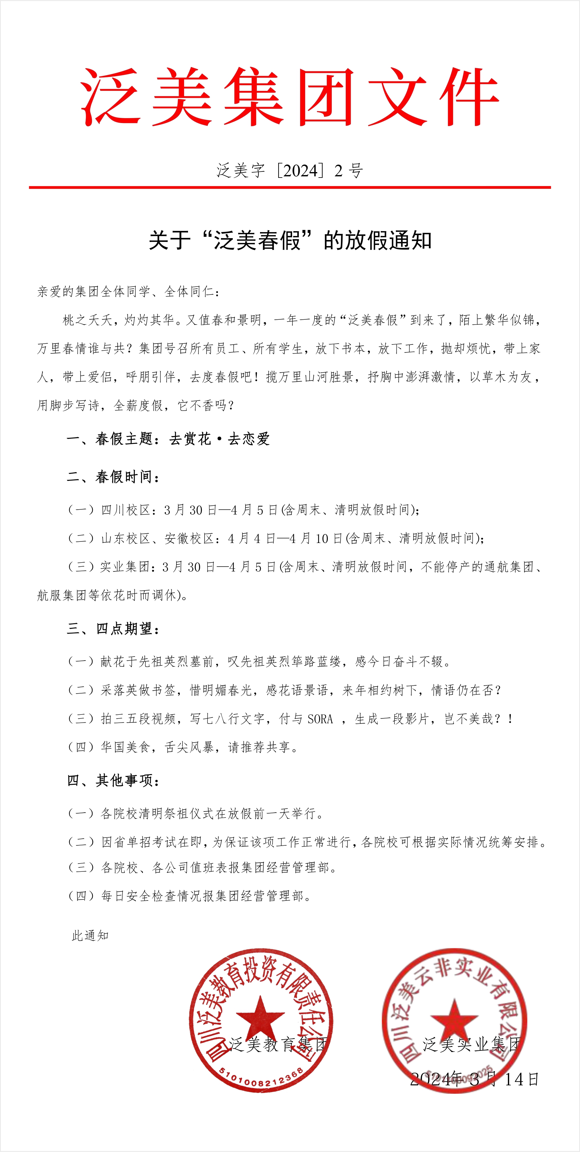 桃之夭夭,灼灼其华。又值春和景明,一年一度的“泛美春假”到来了,陌上繁华似锦,万里春情谁与共🗣?集团号召所有员工👫、所有  学生🌙,放下书本,放下工作,抛却烦忧,带上家人👳🏽‍♂️,带上爱侣,呼朋引伴,去度春假吧🦹🏿‍♀️!揽万里山河胜景,抒胸中澎湃激情🤴🏻,以草木为友,用脚步写诗,全薪度假,它不香吗?