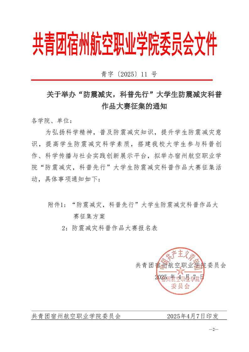 青字〔2025〕11 号关于举办“防震减灾🍩📤,科普先行”大学生防震减灾科普