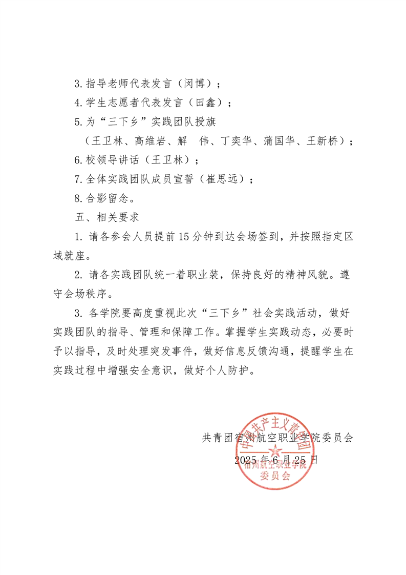 关于举办2025年大学生暑期“三下乡”社会实践活动出征授旗仪式的通知