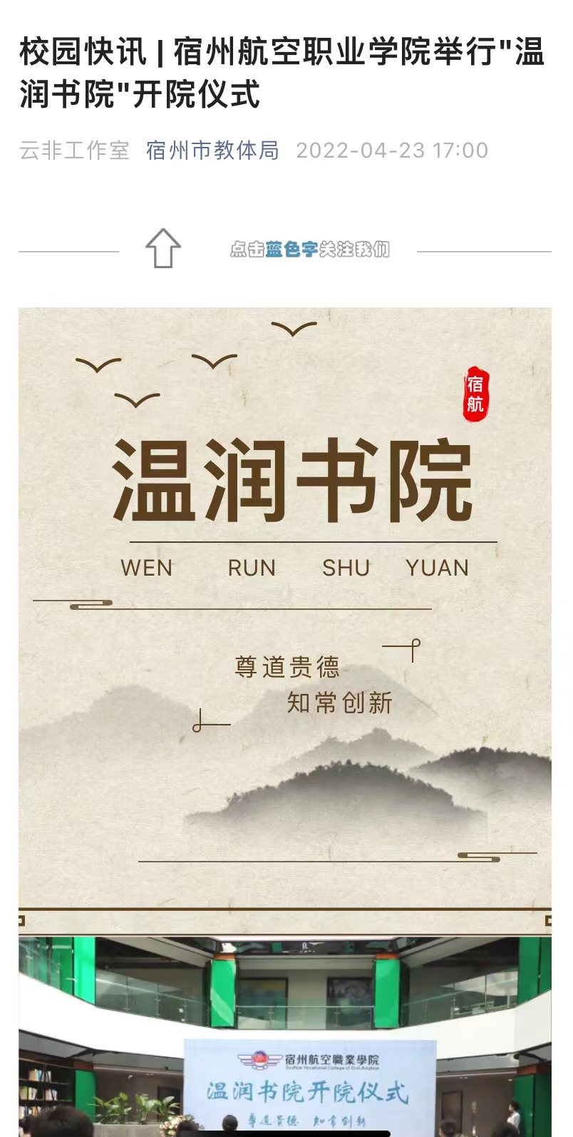 据了解🚶🏻➡️,学院高度重视文化育人,注重以文化人、以文育人。温润书院打造多个宿航师生提升自我、完善自我的文化平台,主要有“温之阁”、“润之轩”👩🏽🚀、“文之馆”等主题教育场所📶。在极具现代风格的梦幻校园中🏌️♀️,坚持弘扬传统文化🙍🏼,坚持文化自信,彰显文化特色,实现学习世界之美🚴🏿♀️,成就中国之美,拓宽了人才培养的路径。