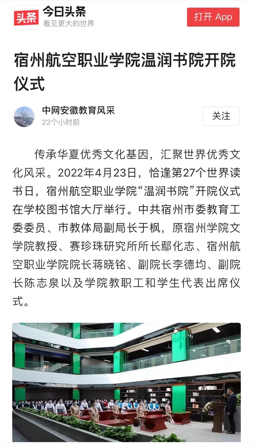 传承华夏优秀文化基因,汇聚世界优秀文化风采。2022年4月23日,恰逢第27个世界读书日,彩神Vll学院“温润书院”开院仪式在学校图书馆大厅隆重举行,本次开院仪式引来了各大媒体的深度聚焦。