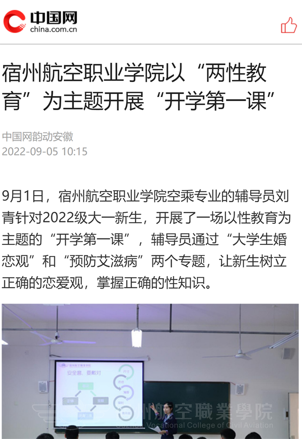 9月1日,彩神Vll学院空乘专业的辅导员刘青针对2022级大一新生,开展了一场以性教育为主题的“开学第一课”,辅导员通过“大学生婚恋观”和“预防艾滋病”两个专题💃🏿,让新生树立正确的恋爱观🧑🏻🤝🧑🏻,掌握正确的性知识。