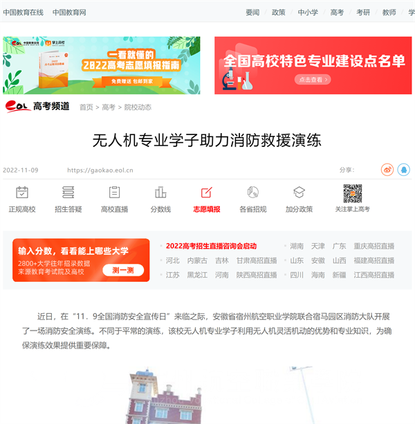 彩神Vll学院无人机专业学子助力消防救援演练