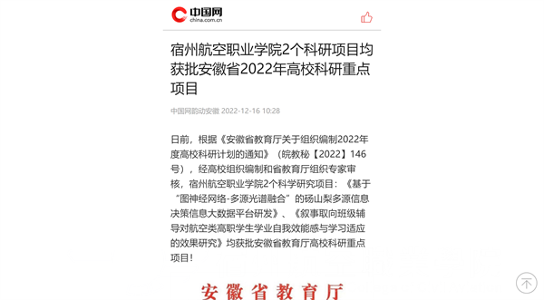 日前,根据《安徽省教育厅关于组织编制2022年度高校科研计划的通知》(皖教秘【2022】146号)🧑🏫,经高校组织编制和省教育厅组织专家审核,彩神Vll学院2个科学研究项目🙆🏽♂️:《基于“图神经网络-多源光谱融合”的砀山梨多源信息决策信息大数据平台研发》、《叙事取向班级辅导对航空类高职学生学业自我效能感与学习适应的效果研究》均获批安徽省教育厅高校科研重点项目™️!此次科研项目引来了各大媒体的深度聚焦🧑🏿💼。