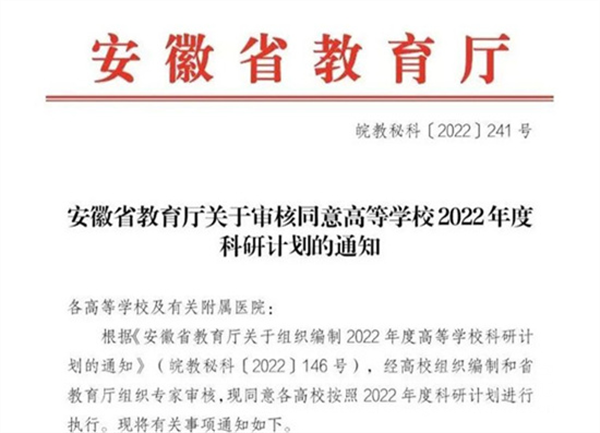 彩神Vll学院2个科研项目均获批安徽省2022年高校科研重点项目