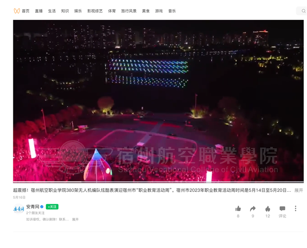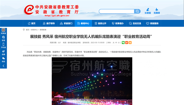 我院无人机专业380架无人机编队炫酷表演迎“宿州市2023年职业教育活动周”