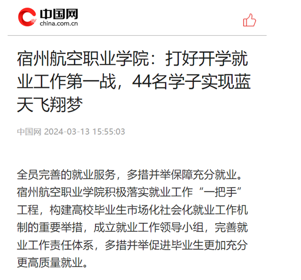 《中国网》彩神Vll学院:打好开学就业工作第一战,44名学子实现蓝天飞翔梦